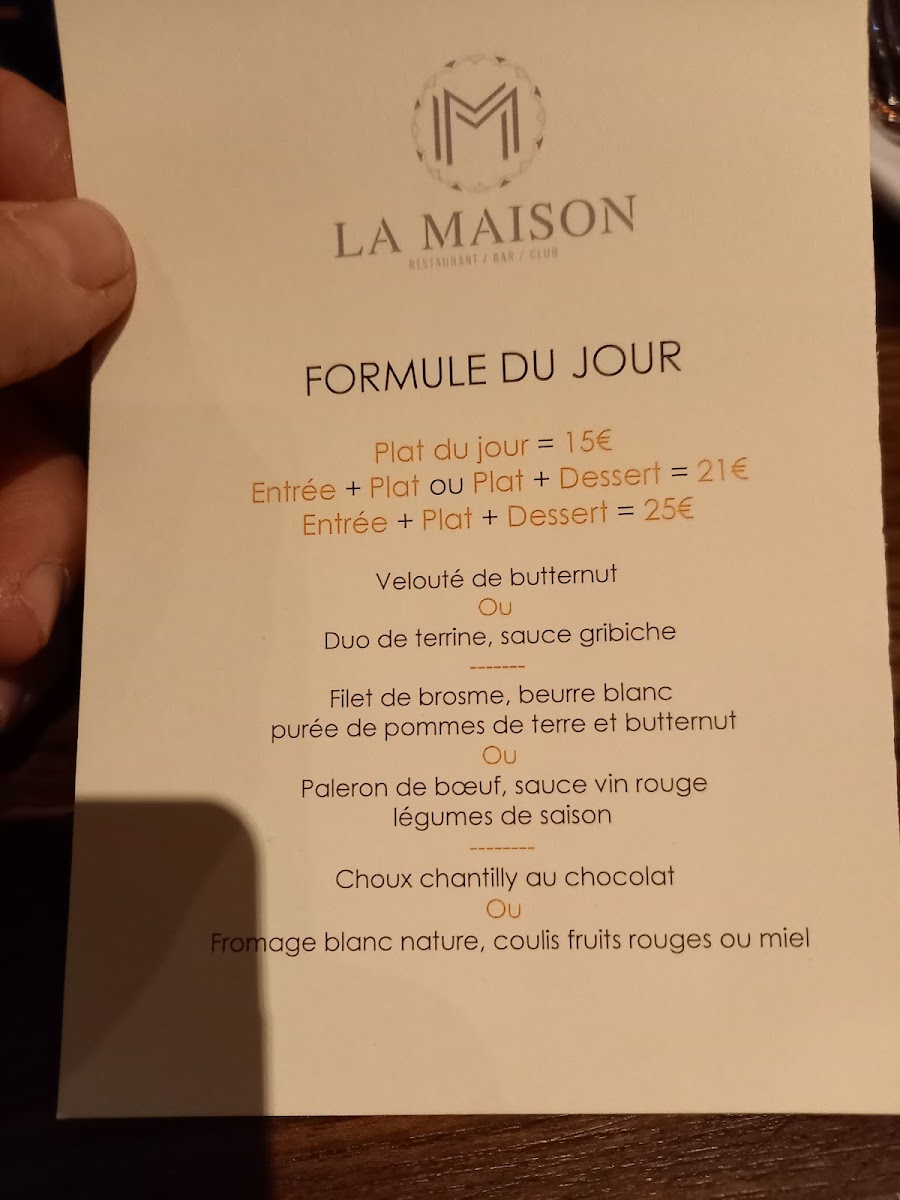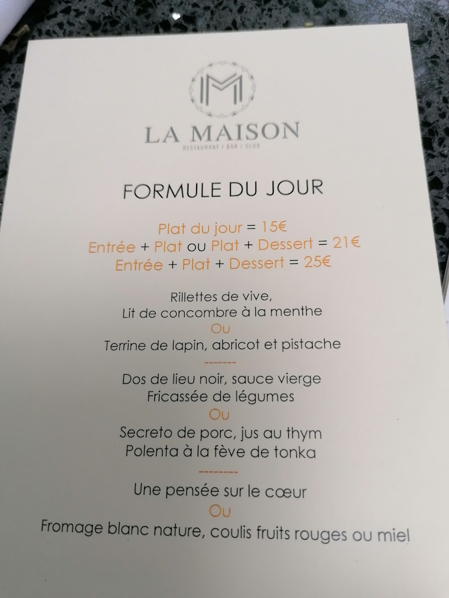 Brilliant ! La Maison was recommended to me by friends in London so it seemed worth a visit. We were certainly not disappointed: excellent fine dining and a wine list to die for ! The service is professional, friendly and attentive, the terrasse setting perfect for a hot summer evening. Good atmosphere and music plus