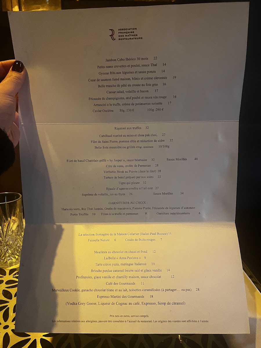 Excellent service... very well trained and friendly staff. Some of the best in Lyon. Food is always good and decor/atmosphere is excellent. Priced fairly for the quality of service and food. Valet parking makes it all very easy too.